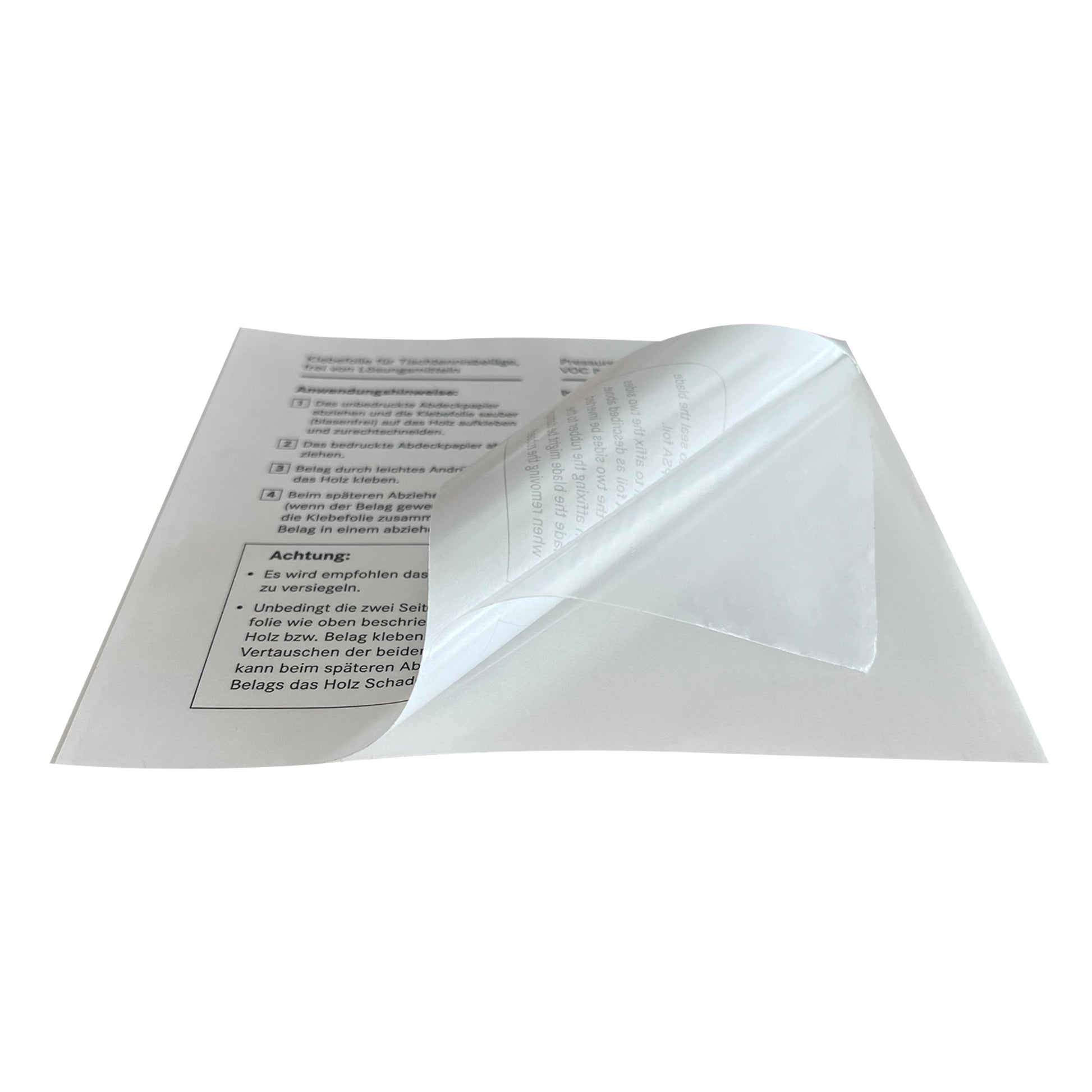 - Das nicht beschriftete Abdeckpapier abziehen und die Klebefolie sauber auf das Holz aufkleben und zurechtschneiden.